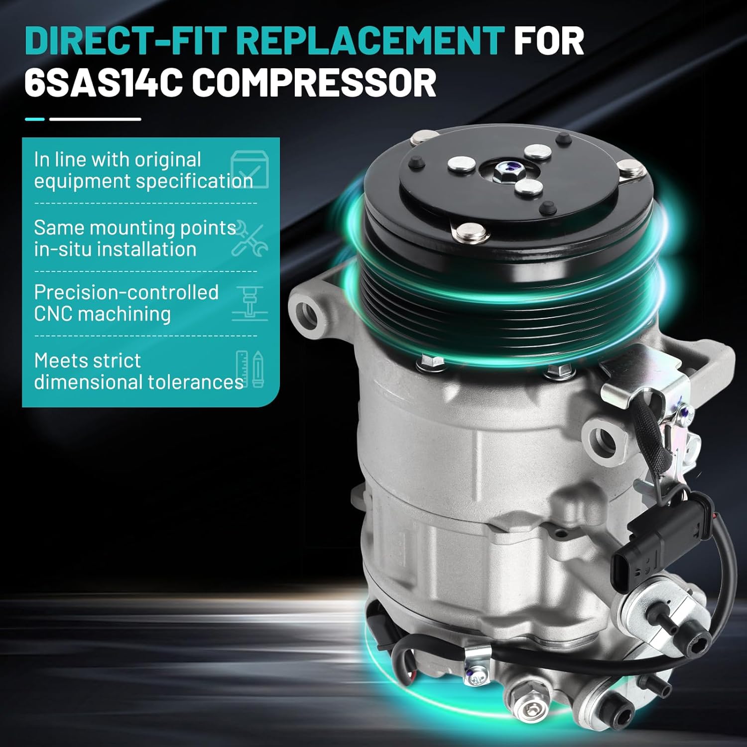 High-Performance Farrme Aftermarket Replacement Automotive Air Conditioning Compressor with Clutch for 2007-2014 for Cadillac Escalade V8 6.2L CO 29002CPart Number:10364873, 10366545, 10568853, 15036042, 15068853, 15068854, 15081860, 15081861,15100337, 15100338, 15106396, 15169964, 15169965, 15707611, 19130365, 19130450,19130457, 19433081, 19433084, 19433085, 20880829, 20931258, 21994155, 25826531,25891791, 25891792, 25940199, 25940200, 37183465, 37183467, 656918068, 815534,84208250, 84208257, 84208259, 86807272, 86811109, 8890248820, 89014907, 89023458,89023460, 89023461, 89024879, 89024882, 89024905, 89024907, 89024909, 89024925,89027905, 8981864610, 78362, 78377.10364873 A/C Compressor with Clutch Specification:①Compressor Type: 10S20F;②A/C Compressor Oil Type: PAG 46;③A/C Compressor Pulley Diameter (mm): 110;④A/C Compressor Pulley Grooves: 4;⑤Clutch Included: Yes;⑥Suction Port Diameter (mm): 26;⑦Voltage: 12V;⑧Material: Aluminum Alloy;⑨Fitment Type: Belt Driven.Compatibility:2002-2005 for Cadillac Escalade V8 5.3L2002-2013 for Cadillac Escalade V8 6.0L2007-2014 for Cadillac Escalade V8 6.2L2003-2006 for Cadillac Escalade ESV V8 6.0L2007-2014 for Cadillac Escalade ESV V8 6.2L2002-2006 for Cadillac Escalade EXT V8 6.0L2007-2013 for Cadillac Escalade EXT V8 6.2L2007-2013 for Chevrolet Avalanche V8 5.3L2007-2009 for Chevrolet Avalanche V8 6.0L2002-2006 for Chevrolet Avalanche 1500 V8 5.3L2002-2006 for Chevrolet Avalanche 2500 V8 8.1L2009-2012 for Chevrolet Colorado V8 5.3L2003-2007 for Chevrolet Express 1500 V8 5.3L2003-2007 for Chevrolet Express 2500 V8 4.8L2003-2005 for Chevrolet Express 2500 V8 5.3L2003-2007 for Chevrolet Express 2500 V8 6.0L2005-2007 for Chevrolet Express 3500 V8 4.8L2003-2007 for Chevrolet Express 3500 V8 6.0L2006-2006 for Chevrolet Silverado 1500 V8 4.3L2000-2013 for Chevrolet Silverado 1500 V8 4.8L2001-2013 for Chevrolet Silverado 1500 V8 5.3L2003-2013 for Chevrolet Silverado 1500 V8 6.0L2009-2013 for Chevrolet Silverado 1500 V8 6.2L2007-2007 for Chevrolet Silverado 1500 Classic V8 4.8L2007-2007 for Chevrolet Silverado 1500 Classic V8 5.3L2007-2007 for Chevrolet Silverado 1500 Classic V8 6.0L2001-2006 for Chevrolet Silverado 1500 HD V8 6.0L2007-2007 for Chevrolet Silverado 1500 HD Classic V8 6.0L2000-2004 for Chevrolet Silverado 2500 V8 5.3L2001-2002 for Chevrolet Silverado 2500 V8 5.7L2000-2004 for Chevrolet Silverado 2500 V8 6.0L2001-2014 for Chevrolet Silverado 2500 HD V8 6.0L2001-2006 for Chevrolet Silverado 2500 HD V8 8.1L2007-2007 for Chevrolet Silverado 2500 HD Classic V8 6.0L2007-2007 for Chevrolet Silverado 2500 HD Classic V8 8.1L2002-2013 for Chevrolet Silverado 3500 V8 6.0L2002-2006 for Chevrolet Silverado 3500 V8 8.1L2007-2007 for Chevrolet Silverado 3500 Classic V8 6.0L2007-2007 for Chevrolet Silverado 3500 Classic V8 8.1L2007-2014 for Chevrolet Silverado 3500 HD V8 6.0L2000-2014 for Chevrolet Suburban 1500 V8 5.3L2000-2002 for Chevrolet Suburban 1500 V8 5.7L2006-2013 for Chevrolet Suburban 1500 V8 6.0L2000-2013 for Chevrolet Suburban 2500 V8 6.0L2001-2006 for Chevrolet Suburban 2500 V8 8.1L2000-2009 for Chevrolet Tahoe V8 4.8L2000-2009 for Chevrolet Tahoe V8 5.3L2008-2013 for Chevrolet Tahoe V8 6.0L2008-2009 for Chevrolet Tahoe V8 6.2L2009-2012 for GMC Canyon V8 5.3L2003-2007 for GMC Savana 1500 V8 5.3L2003-2007 for GMC Savana 2500 V8 4.8L2003-2005 for GMC Savana 2500 V8 5.3L2003-2007 for GMC Savana 2500 V8 6.0L2004-2007 for GMC Savana 3500 V8 4.8L2003-2007 for GMC Savana 3500 V8 6.0L2011-2013 for GMC Sierra 1500 V8 4.3L2000-2013 for GMC Sierra 1500 V8 4.8L2000-2013 for GMC Sierra 1500 V8 5.3L2004-2013 for GMC Sierra 1500 V8 6.0L2007-2013 for GMC Sierra 1500 V8 6.2L2007-2007 for GMC Sierra 1500 Classic V8 4.8L2007-2007 for GMC Sierra 1500 Classic V8 5.3L2007-2007 for GMC Sierra 1500 Classic V8 6.0L2001-2006 for GMC Sierra 1500 HD V8 6.0L2007-2007 for GMC Sierra 1500 HD Classic V8 6.0L2001-2004 for GMC Sierra 2500 V8 6.0L2001-2014 for GMC Sierra 2500 HD V8 6.0L2001-2006 for GMC Sierra 2500 HD V8 8.1L2007-2007 for GMC Sierra 2500 HD Classic V8 6.0L2007-2007 for GMC Sierra 2500 HD Classic V8 8.1L2002-2006 for GMC Sierra 3500 V8 6.0L2002-2006 for GMC Sierra 3500 V8 8.1L2007-2007 for GMC Sierra 3500 Classic V8 6.0L2007-2007 for GMC Sierra 3500 Classic V8 8.1L2007-2014 for GMC Sierra 3500 HD V8 6.0L2000-2009 for GMC Yukon V8 4.8L2000-2014 for GMC Yukon V8 5.3L2001-2013 for GMC Yukon V8 6.0L2007-2014 for GMC Yukon V8 6.2L2000-2014 for GMC Yukon XL 1500 V8 5.3L2007-2009 for GMC Yukon XL 1500 V8 6.0L2007-2014 for GMC Yukon XL 1500 V8 6.2L2000-2013 for GMC Yukon XL 2500 V8 6.0L2001-2006 for GMC Yukon XL 2500 V8 8.1L2003-2007 for Hummer H2 V8 6.0L2008-2009 for Hummer H2 V8 6.2L2008-2010 for Hummer H3 V8 5.3L2009-2010 for Hummer H3T V8 5.3L2012-2018 for Isuzu NPR V8 6.0LNote: This list is a sample of all the compatible cars for this part. Make sure this product fits your car by using the part finder above.Why Choose Farrme Air Conditioning A/C Compressor:Fast Cooling & Stable Performance – Efficient refrigerant compression for rapid temperature drops.Durable & Corrosion-Resistant Build – High-quality aluminum alloy construction for extended lifespan.Ultra-Low Noise & Vibration – Smooth and quiet operation enhances driving comfort.Energy-Efficient Technology – Reduces fuel consumption and optimizes engine performance.Leak-Proof & Sealed Design – Precision machining prevents refrigerant leaks, maintaining system integrity.OEM Standard Fitment – Direct replacement for stock compressors, ensuring compatibility.Upgrade your air conditioning system with our high-performance automotive air conditioning compressor and experience superior cooling, fuel efficiency, and long-lasting reliability.Installation & Maintenance Recommendations:Verify Compatibility: Check your vehicle's year, make, and model before purchasing, ensuring 1OO% match for your vehicle.Proper Refrigerant Level: Ensure the system is properly evacuated and charged with the cor